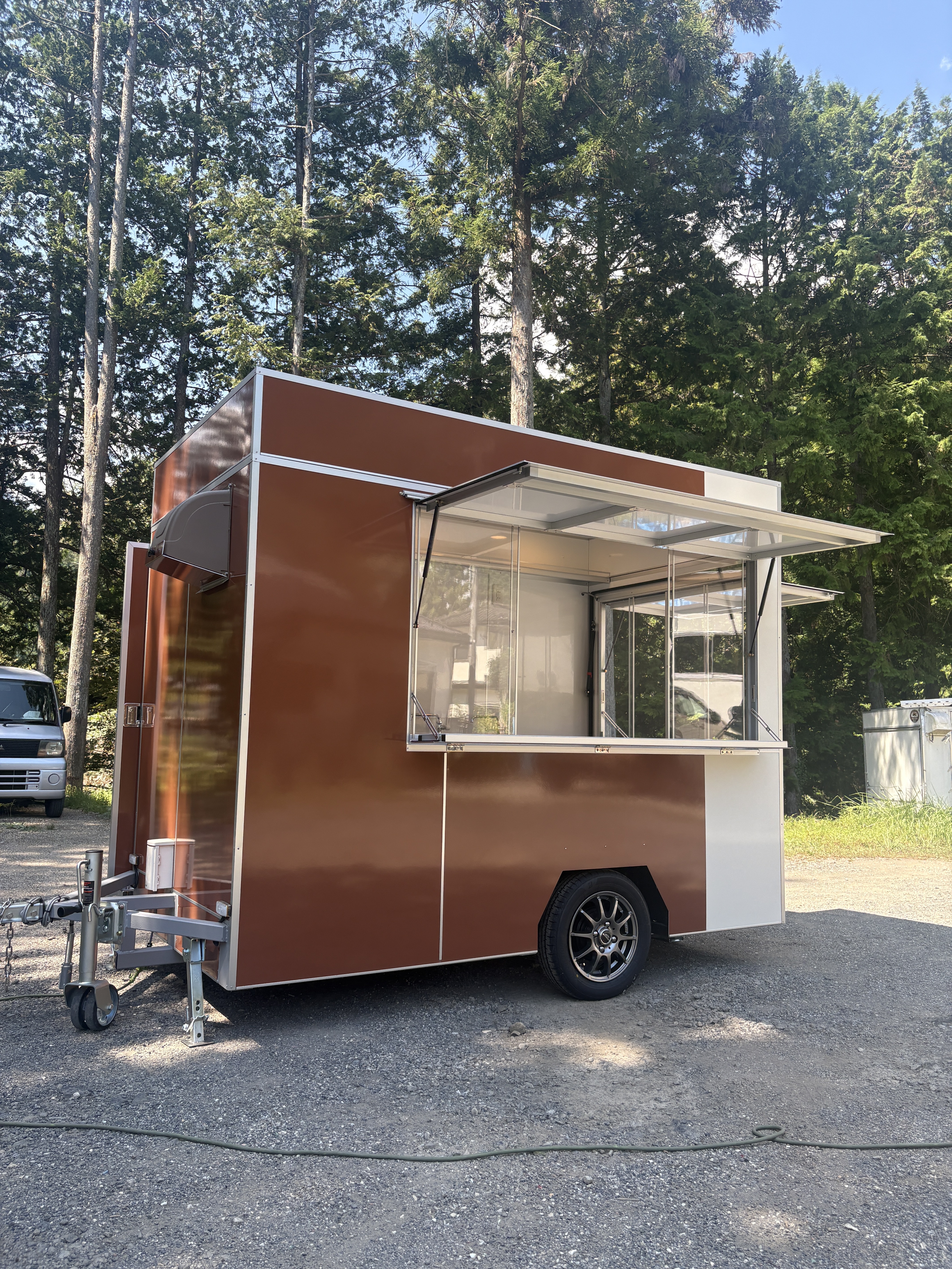 キッチンカー業界では珍しいトレーラータイプのキッチンカーにより、軽トラックの荷台部分やワンボックスをキッチンカーとした場合と比べ作業スペースをとても広く取れ、自由度の高い調理器具の配置によって本格的なピザ窯までをも設置可能としております。