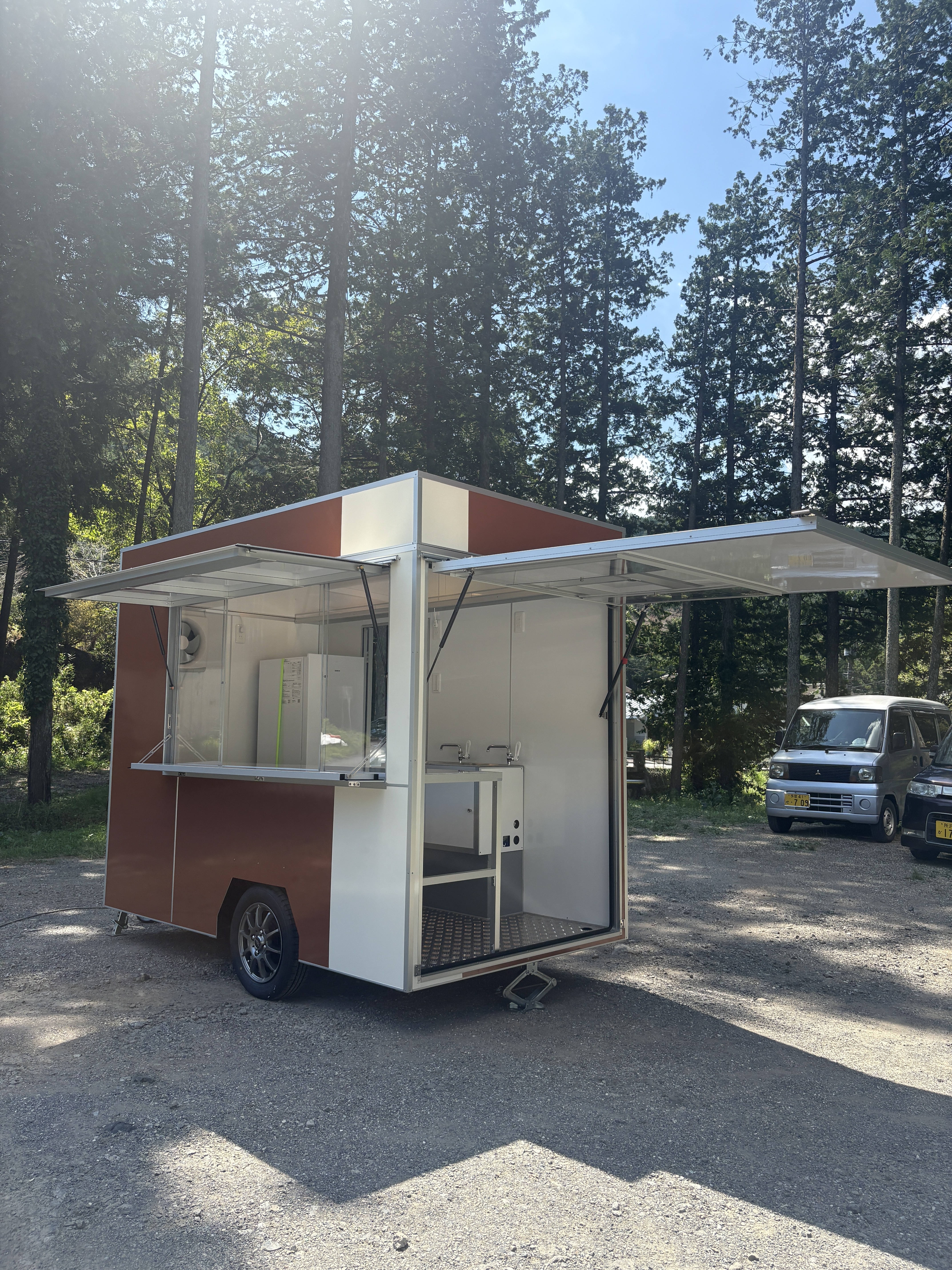 普段使いでは二面の販売口を持ち、大型ゲートにより大きい荷物や機材の出し入れがスムーズにできる仕様になっています。